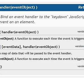 Programming 썸네일형 리스트형 Ajax - XMLHttpRequest XMLHttpRequest(XHR) 객체는 Internet Explore5에서 ActiveX 컴포넌트 형식으로 가장 먼저 제공되었기때문에, 모질라와 사파리 웹브라우저에서 이 객체를 도입하기전까지 사실 많은 개발자들이 XMLHttpRequest 객체의 사용을 꺼려했다. XHR은 W3C 표준이 아니기 때문에 브라우저마다 작동방식에 있어서 다소나마 차이가 존재했었지만 현재 대부분의 브라우저들은 XHR 기능을 서로 비슷하게 구현하고 있다. 현존하는 브라우저들 중에서 XHR을 지원하지 않는 브라우저는 거의 없을정도로 대부분의 브라우저들은 현재 XHR 을 지원하고 있다. ajax 구현의 시작은 XHR 객체의 생성에서 시작한다. 위의 소스는 new 키워드를 사용하여 아주 간단하게 XMLHttpRequest 객체를 생.. 더보기 Ajax란? Ajax (Asynchronous Javascript And XML) Ajax는 비동기 JavaScript 및 XML의 약어이다.(DHTML도 마찬가지다.) Adaptive Path사의 Jesse James Garrett이 이 약어를 만들어냈으며, Jesse에 따르면 이 약어는 두문자어는 아니라고 한다. XMLHttpRequest와 자바스크립트를 이용한 비동기 데이터 교환 XML 및 XSLT를 통한 데이터 교환 및 이용 DOM을 함께 사용하여 다이나믹 표현 제공 XHTML 및 CSS를 이용한 표준 기반 표현 기법 Ajax 애플리케이션에 포함된 기본기술 웹 양식을 구축하고 애플리케이션 완료 때까지 사용되는 필드를 식별하는 데 HTML을 사용한다. 자바 스크립트 코드는 Ajax 애플리케이션을 실행하는 중심 .. 더보기 jQuery - 폼 지원 메소드 [ .submit( handler(eventObject)) ] Submit이 일어날 때 (서식이 전송될 때) 발생하는 이벤트 .submit( handler(eventObject) ) handler(eventObject) 이벤트가 발생하면 실행될 기능. .submit( [eventData], handler(eventObject) ) eventData 이벤트 핸들러에 전달될 데이터 맵. handler(eventObject) ) 이벤트가 발생하면 실행될 기능. .submit() .submit(handler(eventObject) 를 살펴 보면, 뒤에 handler라는 것이 존재를 하고 있다. .submit()을 호출하게 되면 정의된 handler를 실행하고 리턴 받은 Boolean값을 통해 서버로 데이터 전송.. 더보기 jQuery - 스타일 관련 메소드 [ .css() ] 적용된 스타일을 가져오거나, 새로운 스타일을 적용한다. css(propertyName) .css(propertyName) css(propertyName, Value) .css(propertyName, value) .css(propertyName, function(index, value) .css(map) $(“div”).css(“background-color”) $(“div”).css(“background-color”, “red”); 위의 소스는 이미 적용된 스타일을 가져오는 것이고, 아래의 예는 배경 색을 빨간색으로 지정하는 소스이다. $(“div”).css(“background-color”, function(index, value) { }); 와 같은 형식을 통해 자신이 원하는 기.. 더보기 jQuery Event - Browser Events jQuery Event - Browser Events .error() 오류가 발생할 때 발생되는 이벤트 .resize() 화면 크기가 변경될 때 발생하는 이벤트 .scroll() 스크롤이 움직일 때 발생하는 이벤트 [ .resize(handler(eventObject) ] 창의 크기가 변할 때 발생하는 이벤트 .resize( handler(eventObject) ) handler(eventObject) 이벤트가 실행될 때 동시에 수행될 기능 .resize( [eventData], handler(eventObject) ) eventData 이벤트 핸들러에 전달될 데이터 맵 handler(eventObject) 이벤트가 실행될 때 동시에 수행될 기능 .resize() resize 핸들러 안의 코드는 핸들러가.. 더보기 jQuery Event - .one() & .live() & .die() jQuery Event - .one() & .live() & .die() .one() .bind()와 동일하지만 이벤트가 한 번 실행된 후 .unbind()가 된다. .live() 앞으로 생성될 요소에도 이벤트 핸들러를 지정 이벤트 델리게이션(Event Delegation)을 사용하여 새로 생성되는 요소에도 이벤트가 적용된다는 점에서 .bind()와 다르다. .die() .live()로 생성된 이벤트 핸들러를 삭제한다. [ .one( events [, data], handler(eventObject)) ] .bind() 메소드와 동일한 방식으로 이벤트를 추가한다. 하지만 .one() 메소드를 통해 추가된 이벤트는 딱 한번만 실행이 되고 사라지게 된다. .one( events [, data], handle.. 더보기 jQuery Event - .bind() & .unbind() jQuery Event - .bind() & .unbind() .bind() 요소에 이벤트 핸들러를 지정 .unbind() 지정된 이벤트 핸들러를 삭제 [ .bind( eventType [, eventData] , handler(eventObject)) ] .bind() 메소드는 말 그대로 개체와 이벤트를 묶어주는 역할을 한다. .bind( eventType [, eventData], handler(eventObject) ) eventType 하나 이상의 DOM 이벤트를 표현하는 문자열. "click", "submit," 또는 사용자가 만든 함수들(사용자정의함수). eventData 이벤트 핸들러에 전달하기 위한 데이터 집합(map of data). handler(eventObject) 이벤트와 함께 실.. 더보기 jQuery Event - Document loading jQuery Event - Document Loading .load() 페이지 로딩이 완료되었을 때 발생하는 이벤트 .ready() DOM이 모두 준비 되었을 때 발생하는 이벤트 .unload() 페이지를 벗어날 때 발생하는 이벤트 [ .load(handler(eventObject) ] load 이벤트는 모든 요소들이(포함한 하위 요소까지도) 완전히 읽혀(load)졌을 때 발생합니다. 이 이벤트는 a URL: images, scripts, frames, iframes, 그리고 window 객체와 같은 특정한 요소들에서 사용할 수 있다. .load( handler(eventObject)) handler(eventObject) 이벤트가 발생했을 때 실행될 기능. .load( [eventData], handl.. 더보기 jQuery Event - Form Events jQuery Event - Form Events .focus() 요소에 포커스 되었을 때 발생하는 이벤트 .blur() 요소에서 포커스를 잃을 경우에 발생하는 이벤트 .change() , , 요소의 값 변경 시 발생하는 